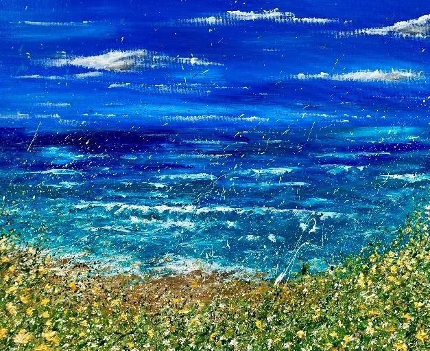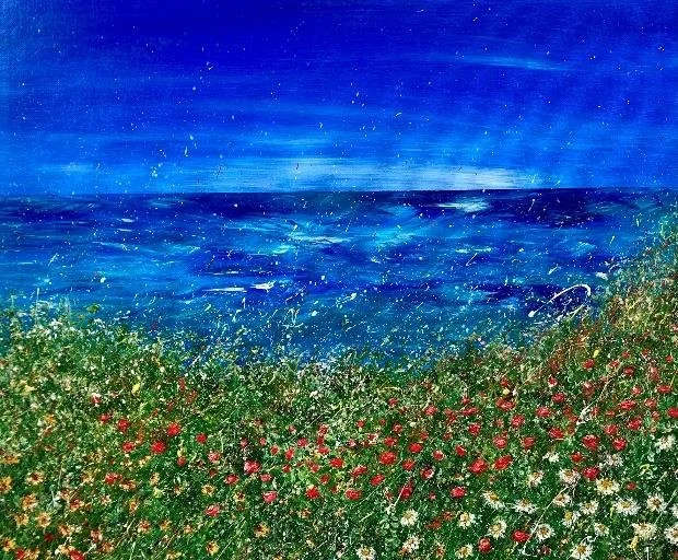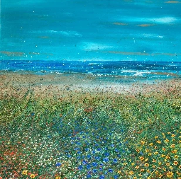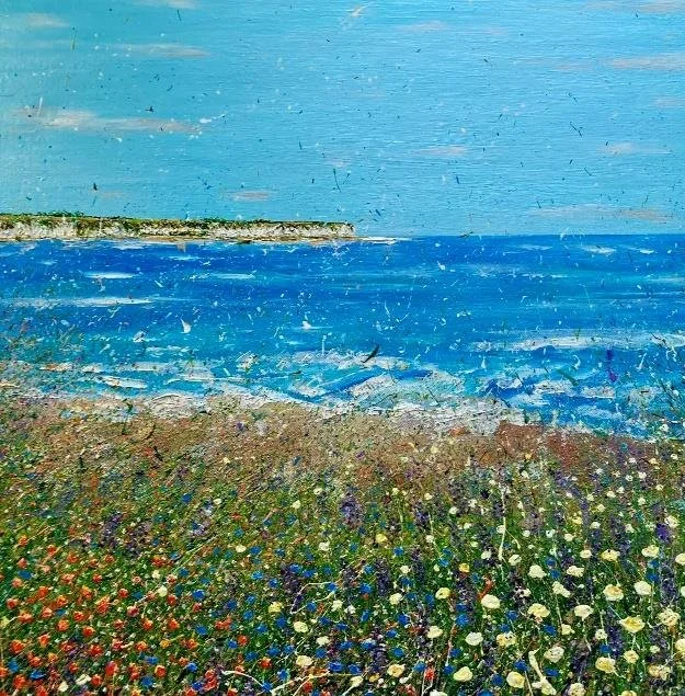 Nic Draper is a Flamborough-based artist whose work is shaped by the restless energy of the coast and the quiet beauty of local gardens. Through layered textures, delicate luminosity, and vibrant bursts of colour, Nic captures what the eye cannot always see — the fleeting shimmer of light, the hidden movement of wind, the whispers of changing tides.